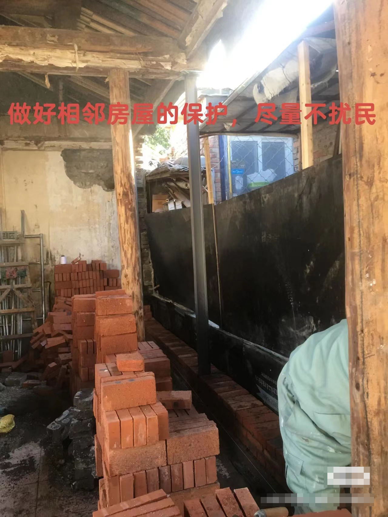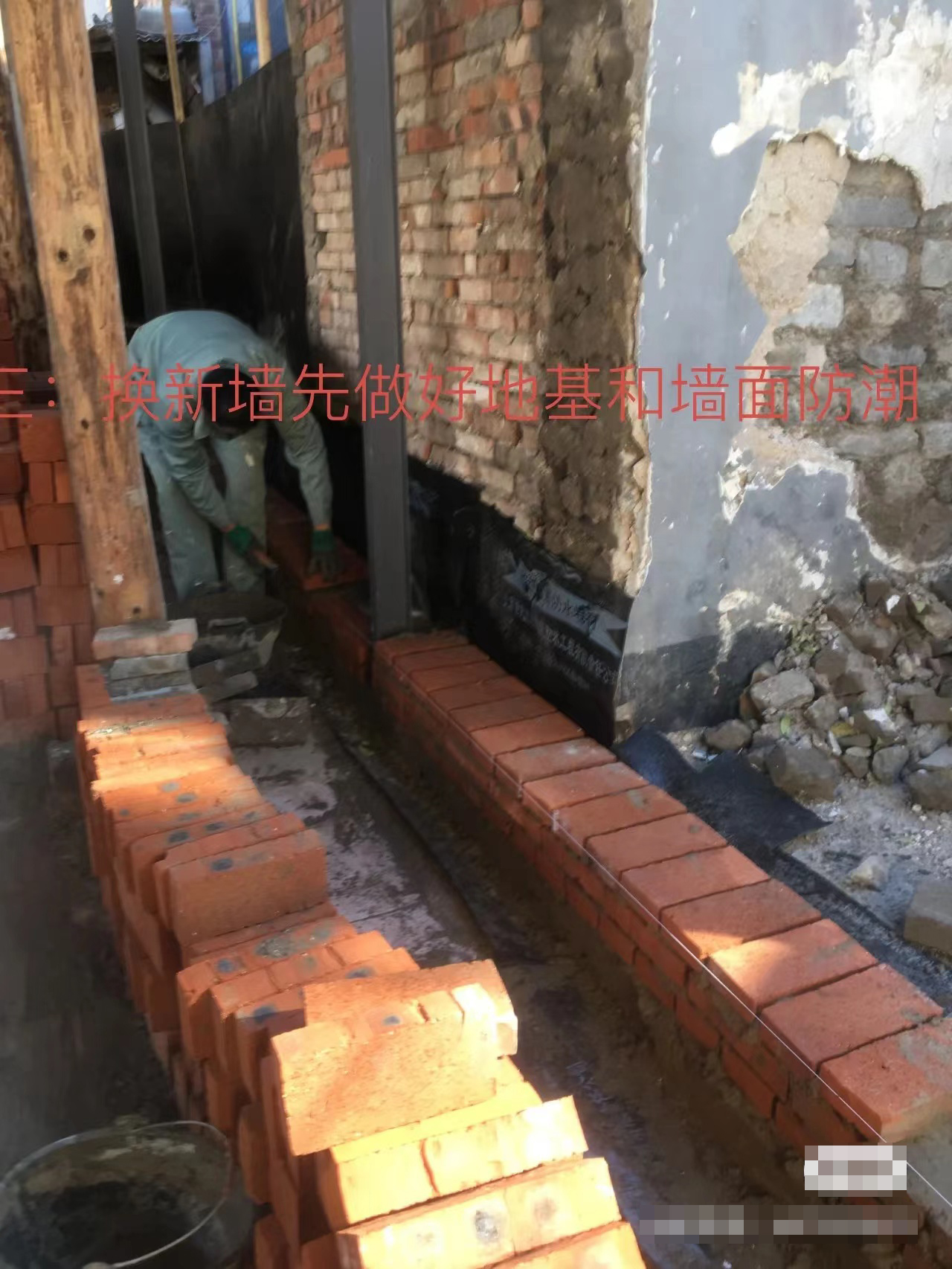 一 换墙 北京二环里平房修缮工程最有难度的就是换墙换顶,其中换墙最为麻烦且风险大。
