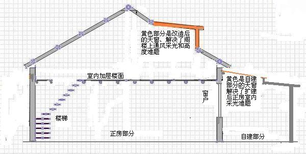 北京二环内的平房差不多都是一家挨着一家、外套加层的方法几乎用不上,所以我们这里只介绍在自家室内套框架结构再加二层的方法。
